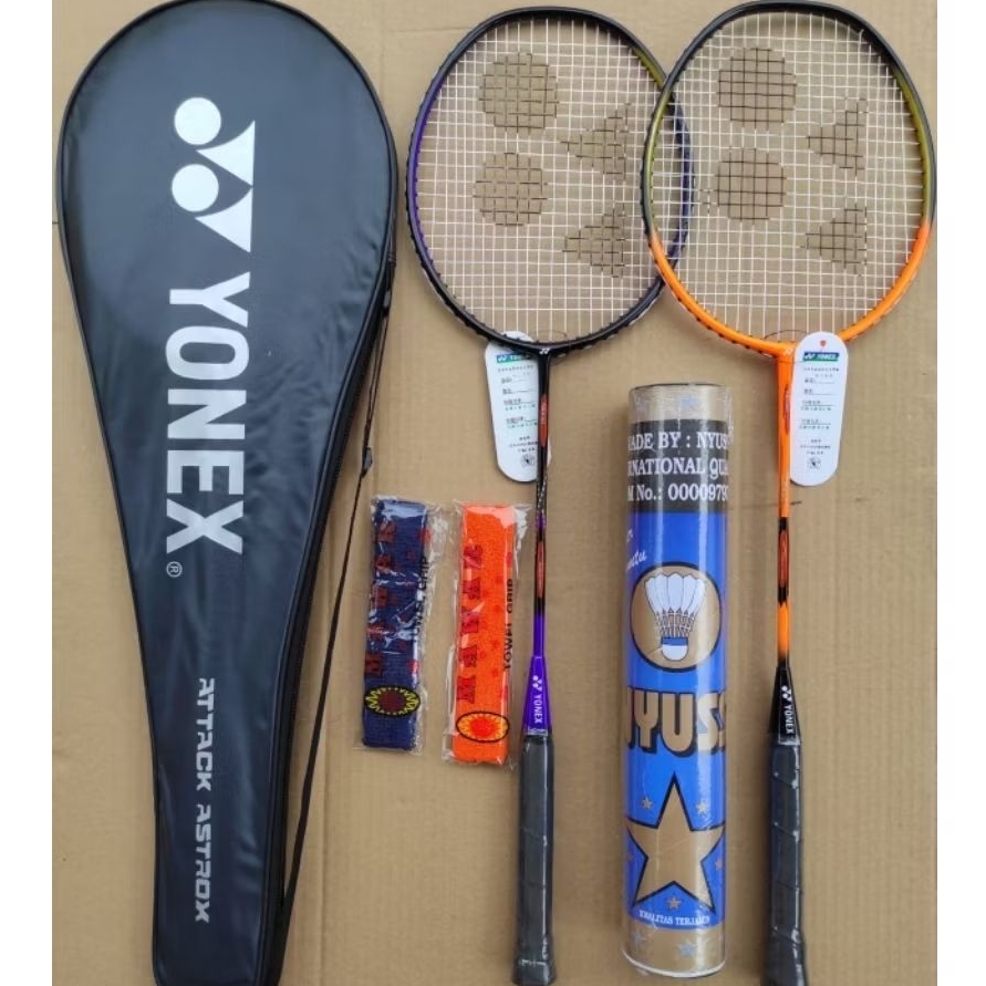 Raket Badminton Paket Lengkap Dapat 2 Raket + 2 Grip + 1 Tas + 1 Slop Kock