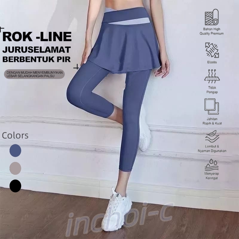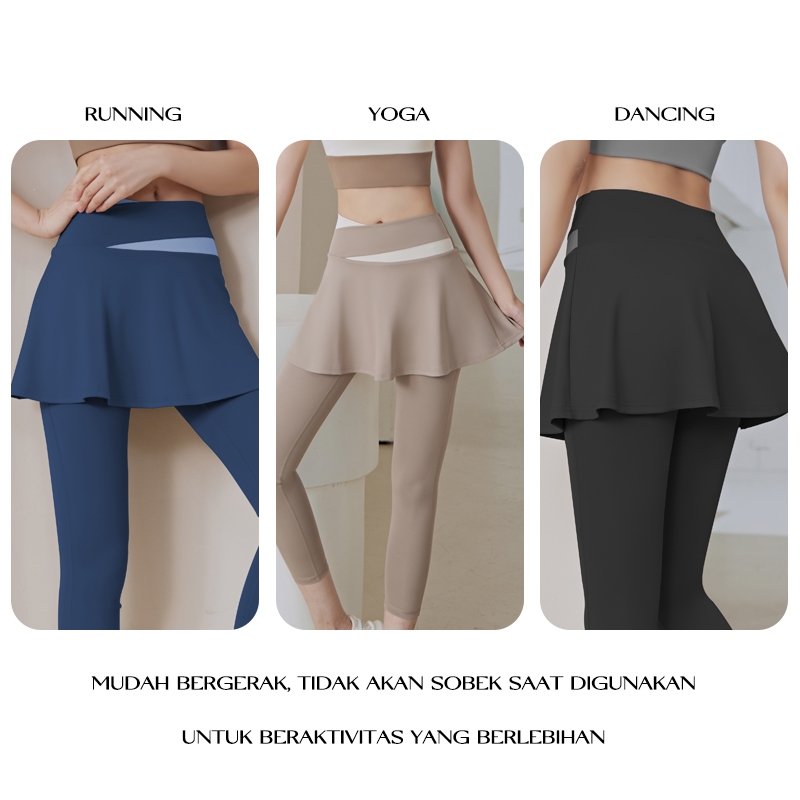 Legging Celana Rok Olahraga Wanita High Waist 2 in 1 Skirt Yoga Gym Running Sport