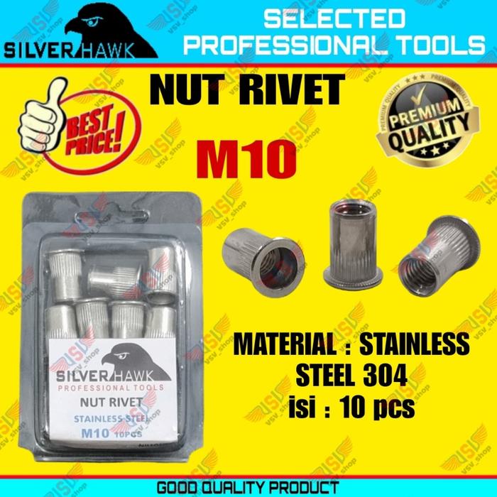 Rivet Nut M10 GALVANIS/STAINLESS STEEL/ALUMINIUM Mur Rivet Tanam Rifnut Nutsert - STAINLESS STEEL 304 Standar