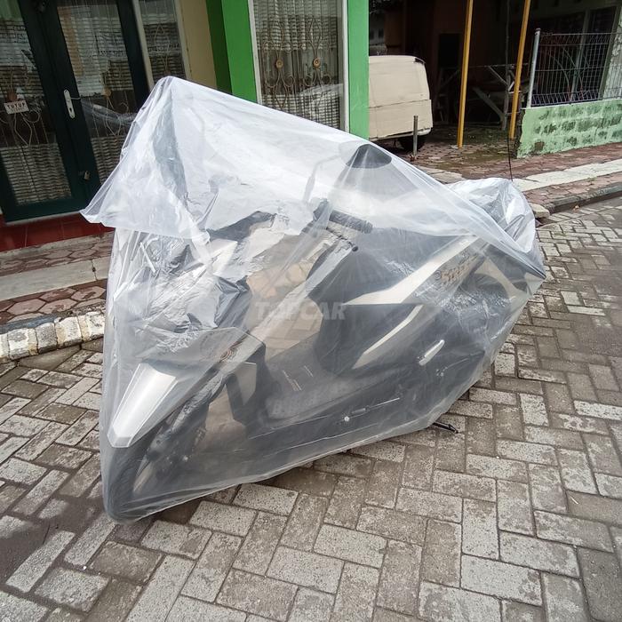 YUK BELI ! COVER MOTOR TRANSPARAN WATERPROOF MOGE MOTORCYCLE SEPEDA - L, TRANSPARAN ORI