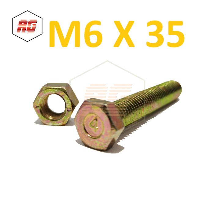 BAUT MUR HEX GALVANIS KUNING KUNCI 10 M6 X 35 - 100Pcs