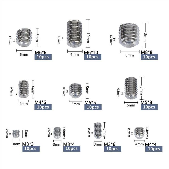 Baut Tanam Socket Hex M3-M8 Stainless Isi 200/100PCS Headless Plus Kotak - Isi 200PCS + Kotak