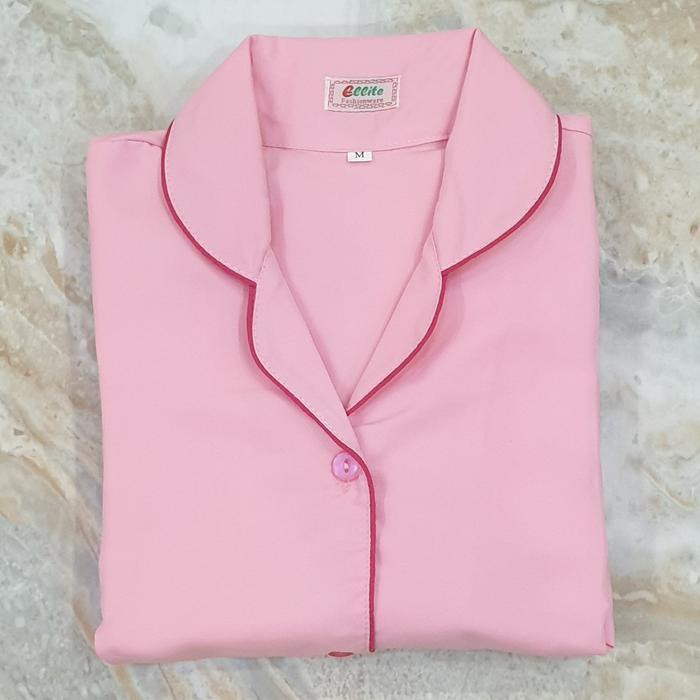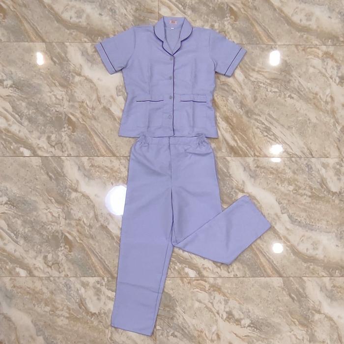 Baju Suster Warna List Uk S M L / Baju Pendek + Celana Panjang - Biru, S