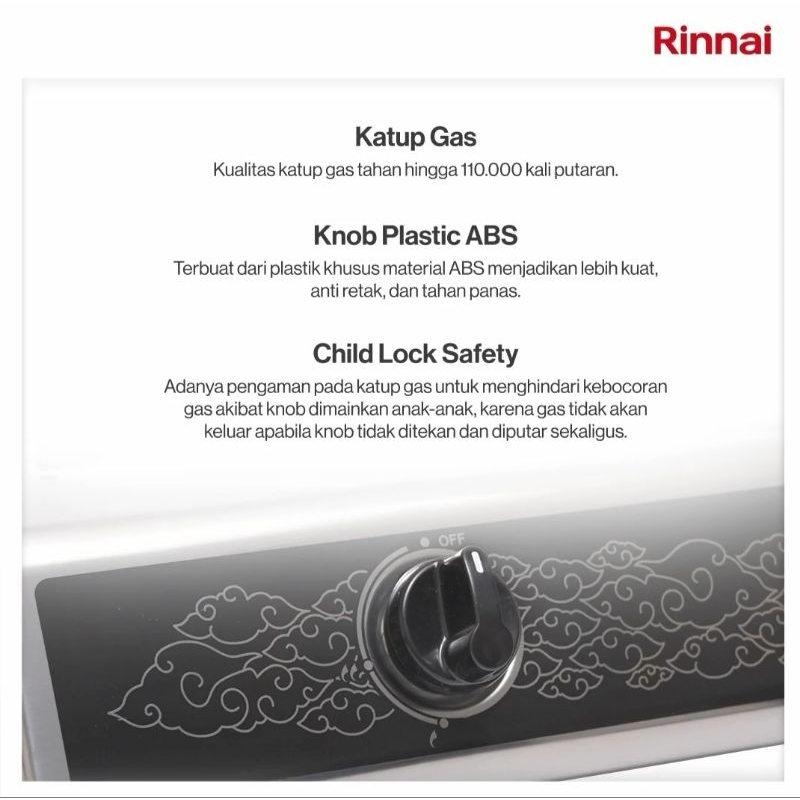 KOMPOR GAS RINNAI 2 TUNGKU STENLIS MOTIF BATIK RI 522 SS RI-522-SS + REGULATOR SNI TERBARU MURAH ORIGINAL BERKUALITAS