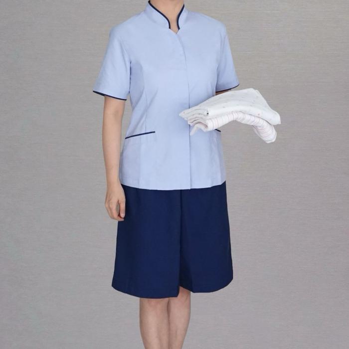 Seragam Suster / Perawat / Pekerja Fitform - Duo-Tone Mandarin Trim (Celana Pendek / Culotte) - Duo Blue, S