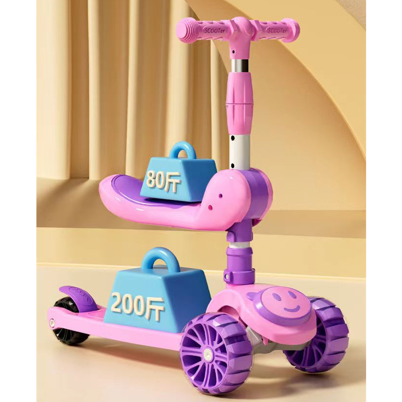 Skuter Anak Roda 3 dengan Lampu Musik Scooter 2 in 1 Bisa Lipat