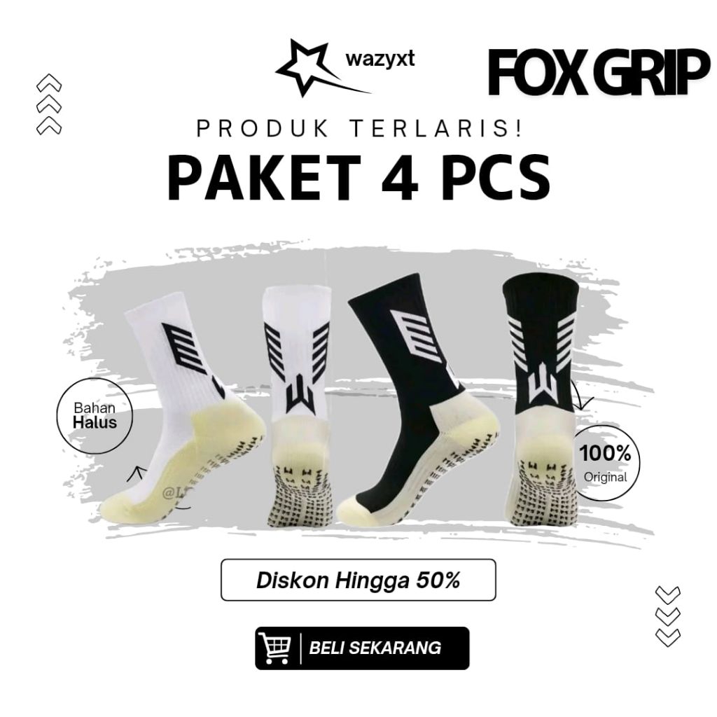 Kaos Kaki Futsal Anti-Slip ⚫️FOX GRIP TYPE E BLACK & WHITE⚪️