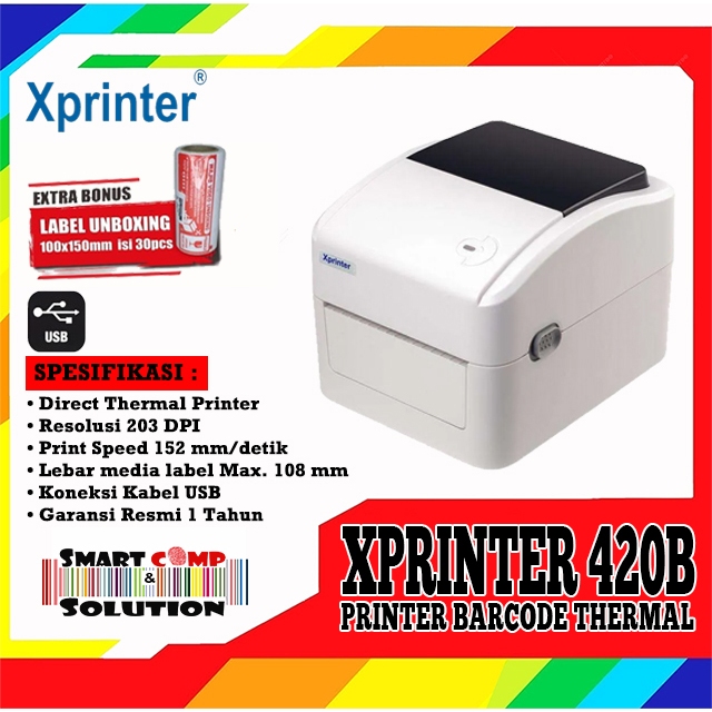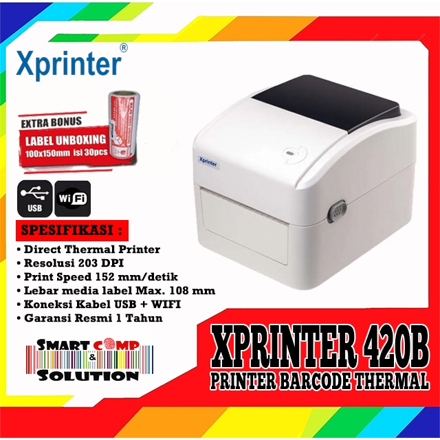 XPrinter 420B Printer Bare Bluetooth - USB Direct Thermal Label RESI Alamat A6 Market Place