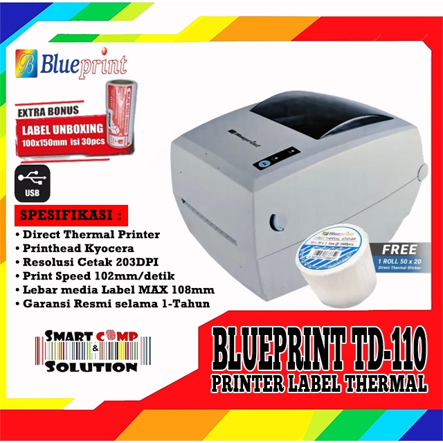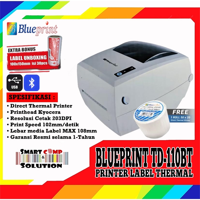 Printer Bare Thermal Blueprint TD110 / BP-TD110 / TD110BT / BP-TD110BT USB Label Resi Marketplace