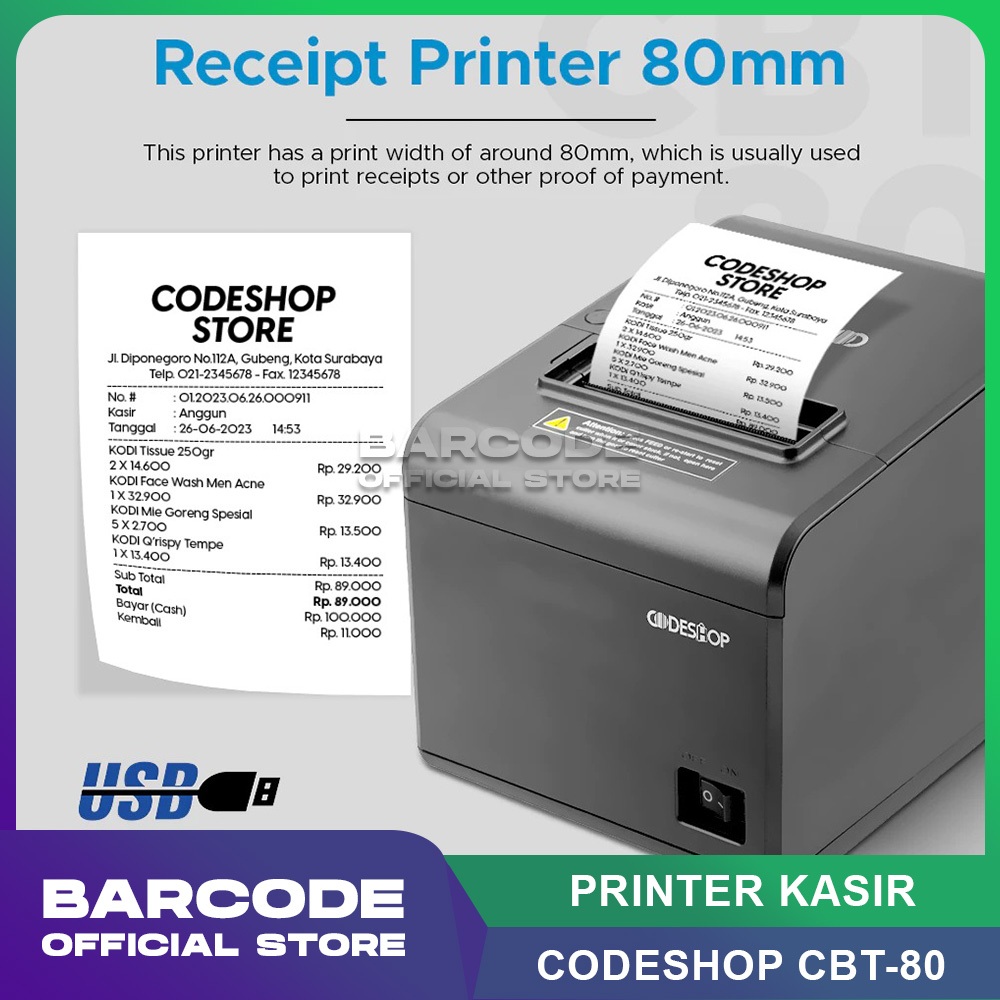 eshop CBT-80 Printer Struk Kasir Thermal 80 mm USB Bluetooth