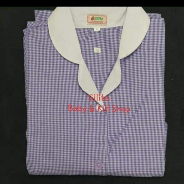 Baju Seragam Suster Motif Kotak /Baju Pendek Celana Panjang - Biru, S