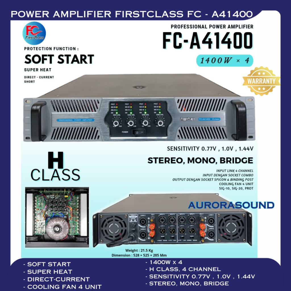 POWER AMPLIFIER FIRSTCLASS FC A41400 DIGITAL AUDIO PROFESSIONAL AMPLI 4 CHANNEL FCA41400 BLUETOOTH CLASS H ORIGINAL