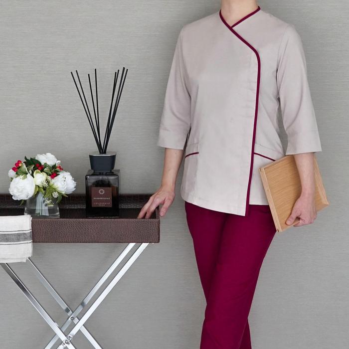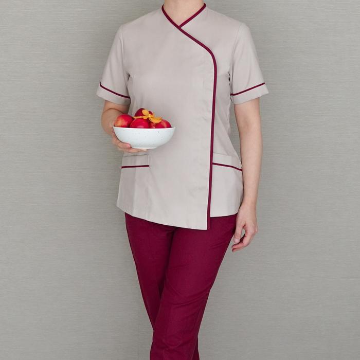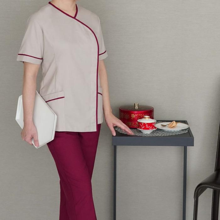 Seragam Suster / Perawat Fitform Taupe-Cherry Side Wrap - Pendek, S