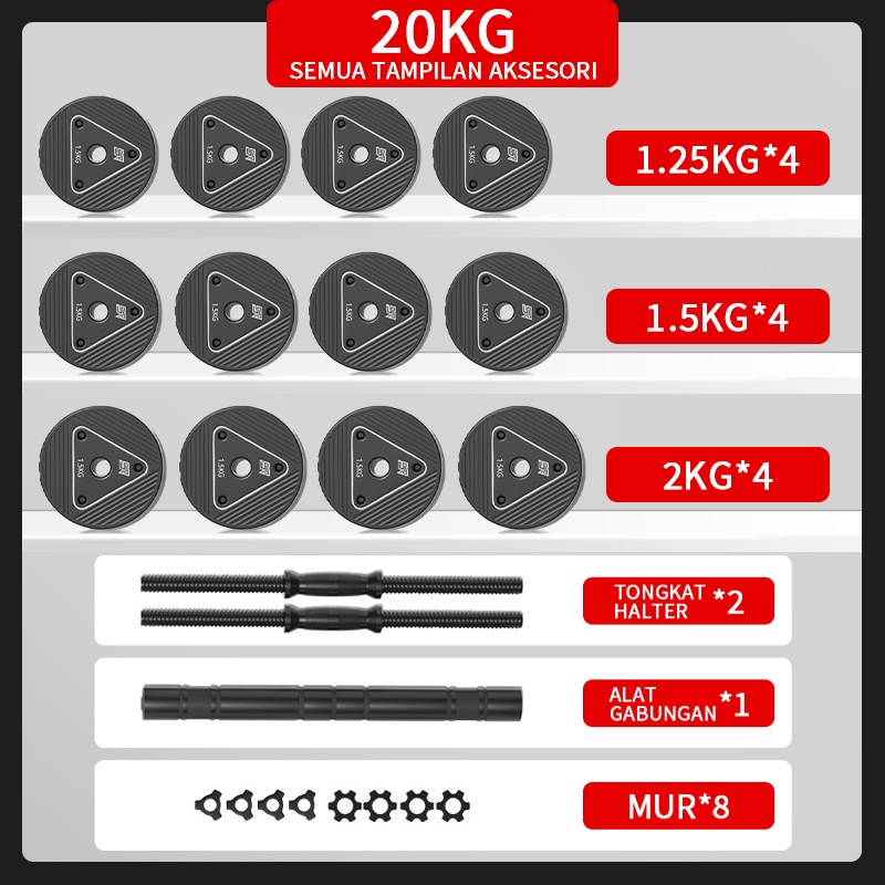 Alat Olahraga Rumahan/Alat Futnes Gym Set/Dumbell Barbell 20Kg Multi Function Dumbbel/Bisa Bongkar Pasang