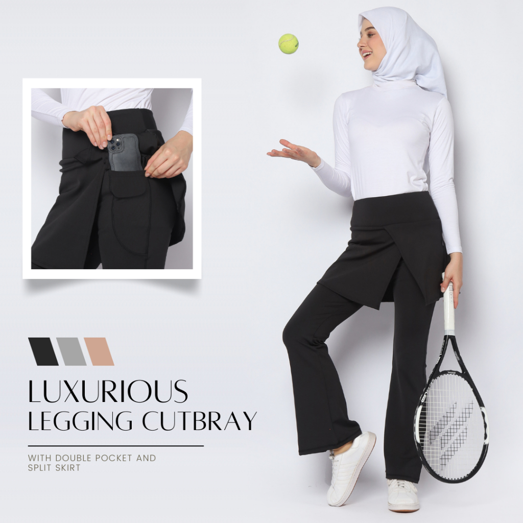 ELITE - Legging Rok CUTBRAY BELAH | Legging Cutbray Split Skirt Desain [FREE KAOS KAKI ]