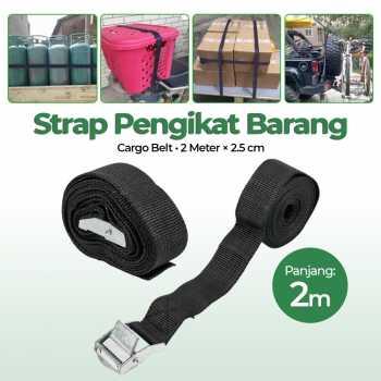 YUK BELI ! TALI PENGIKAT BARANG CARGO BELT MOBIL MOTOR BARANG PANJANG 2 METER X 2.5 CM - HITAM ORI