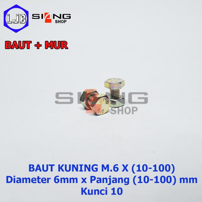 HARGA MIRING ! PER 50BJ BAUT KUNING M6 PANJANG 10 SD 100MM - 10MM (1CM) MURAH