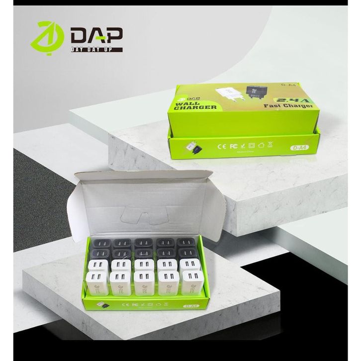 Adaptor Kepala Cassan 1BOX ISI 20PCS Adaptor Charger DAP D-A4N 2USB Batok Charger DAP Kepala Casan DAP D-A4 ORIGINAL
