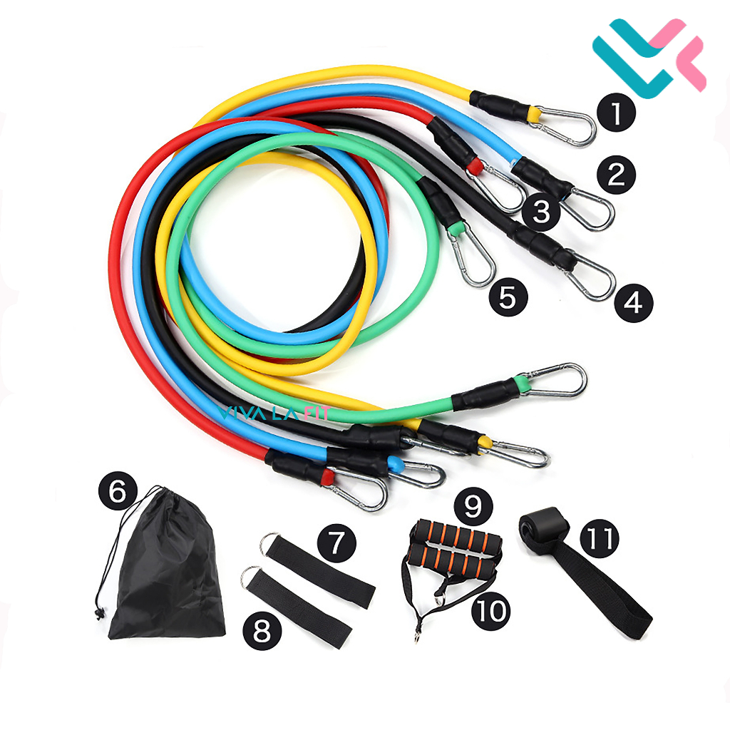 Viva La Fit Resistance Band 11 in 1 Set Alat Olahraga Dirumah Outdoor