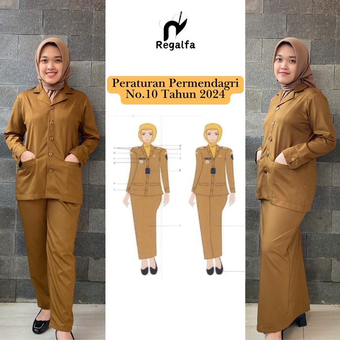 Setelan Baju Kerja Khaki Blazer Dinas Seragam Pdh Pemda Wanita Pns Model Kerah Rebah Terbaru Katun Celana Panjang - Ata