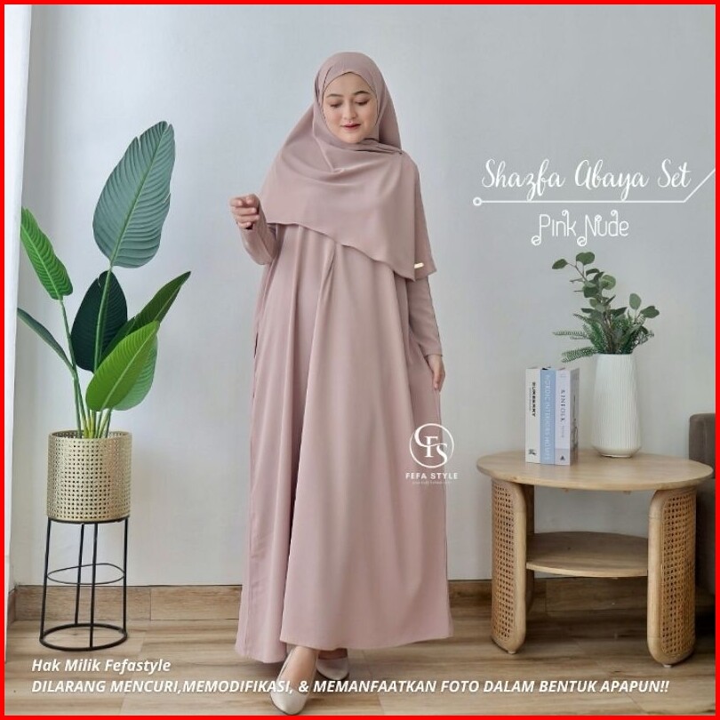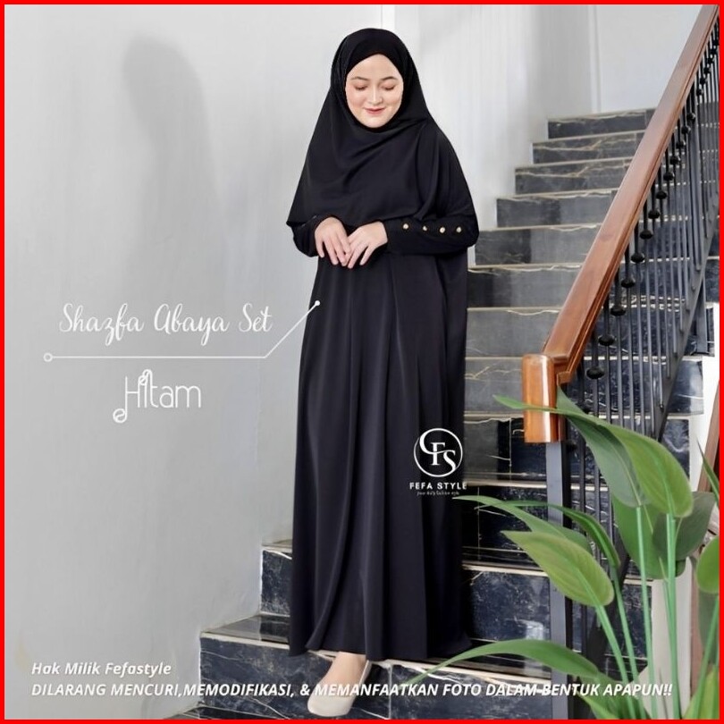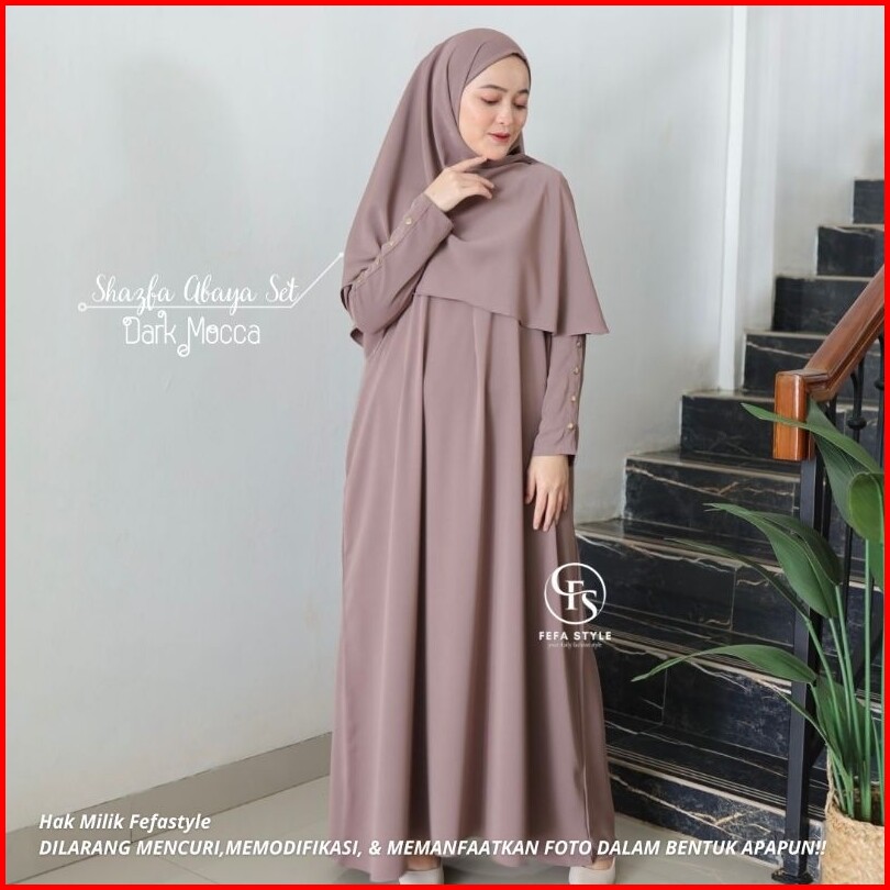 Fefa Style - Shazfa Abaya Set Kerudung - Gamis Dress For Haji Umroh Busui Friendly-bahan Premium
