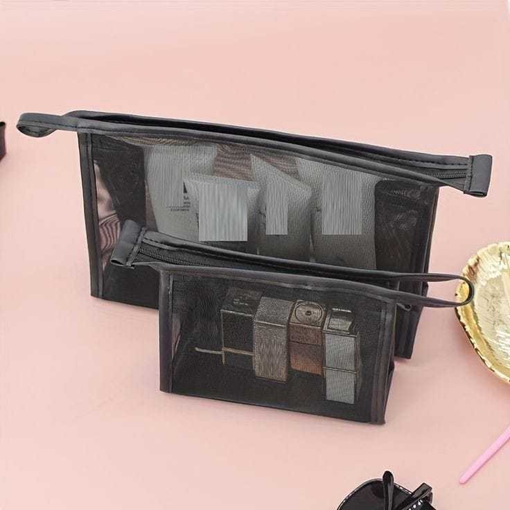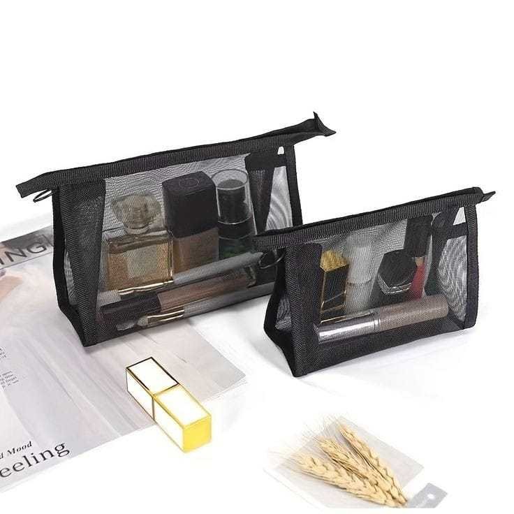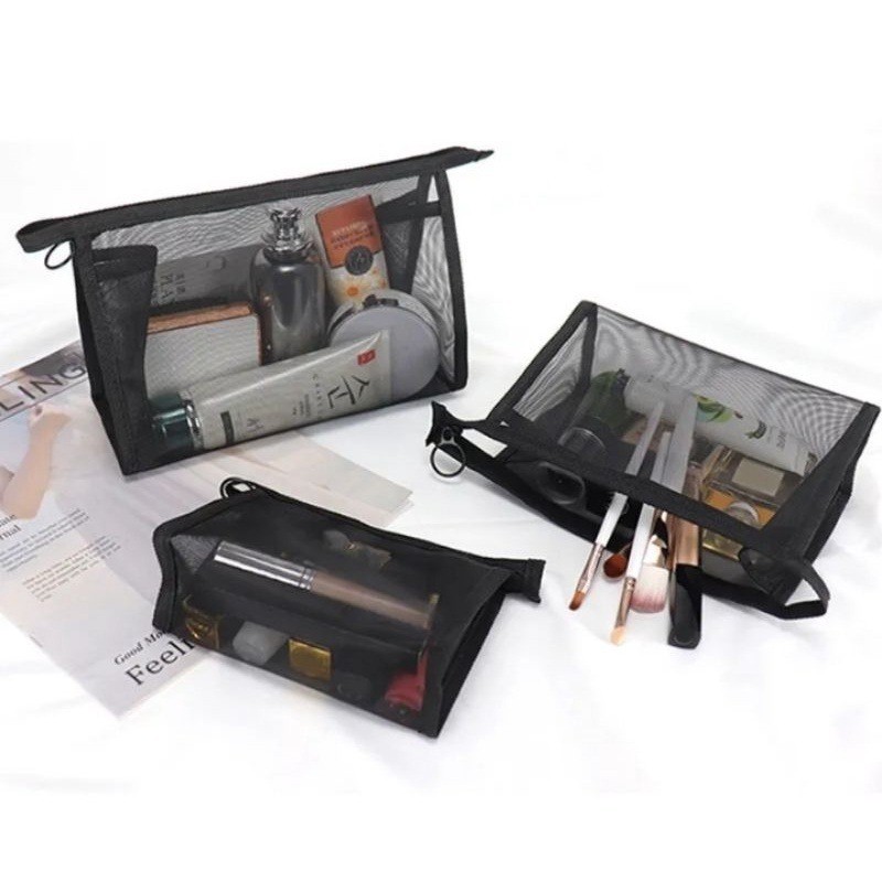 Tas Pouch Kosmetik Tas Kosmetik Transparan Jaring Polyster Washbag Pouch Travel MakeUp Bag Organizer Waterproof Makin Fa