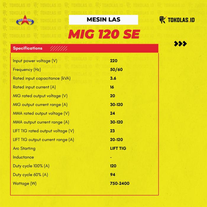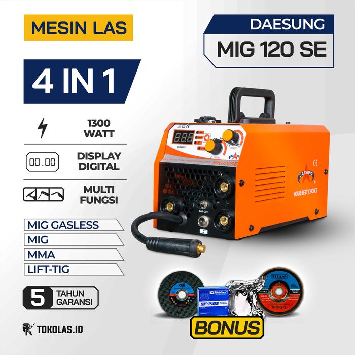 Mesin Las Inverter Mig 120 Se Daesung Multifungsi 4 Mode Tig Mma Gasless Fcaw Korea