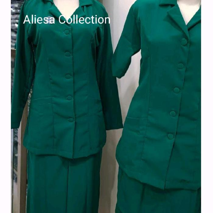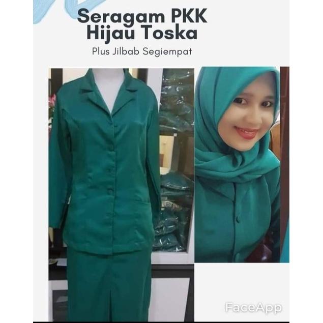 Seragam Pkk Hijau Toska (Setelan Panjang&Pdk) Wanita Kerja - Stelan Panjang + Hijab Sg4, S
