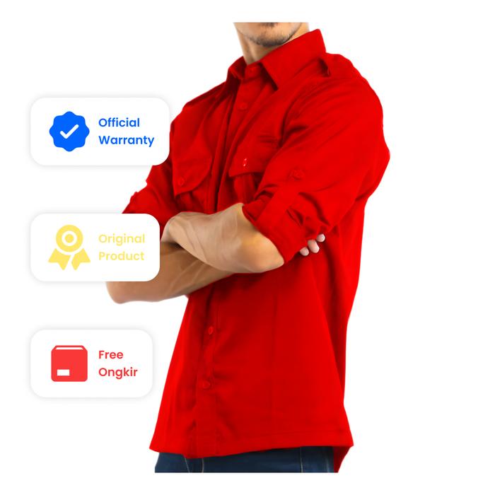 Kemeja Pria Pdl Tactical Seragam Lengan Panjang Safari Pdh Warna Merah - Merah, S