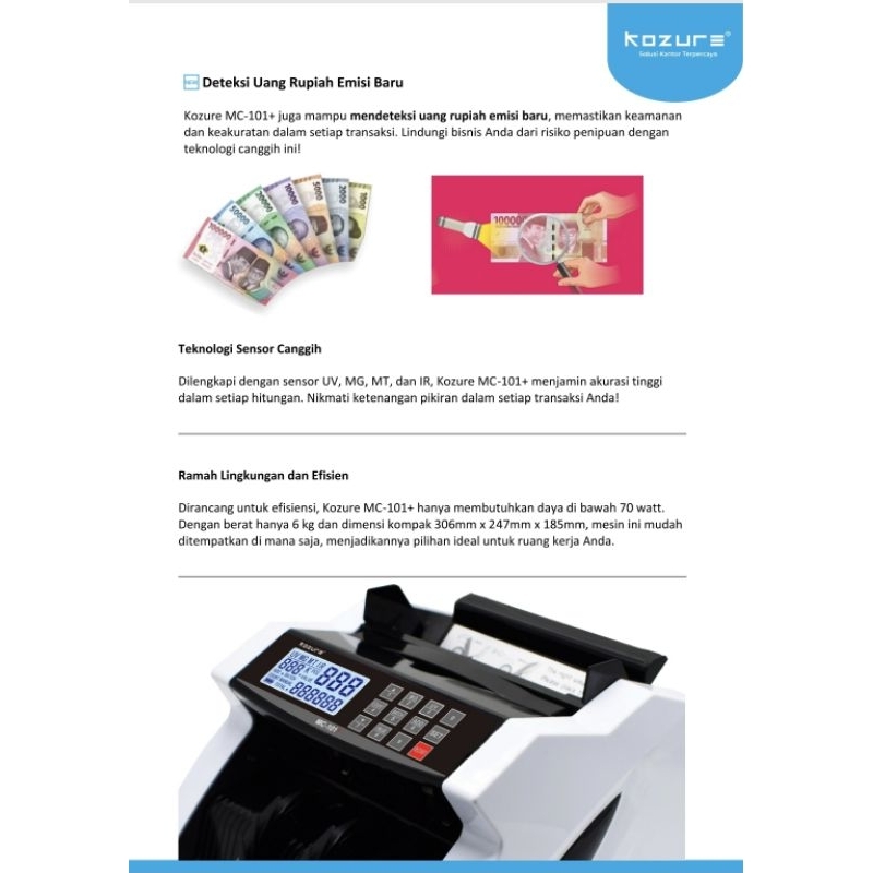 Mesin Penghitung Uang Kozure MC101+ Bill Counter Kozure MC-101+ Mesin Hitung Uang Kozure MC101Plus