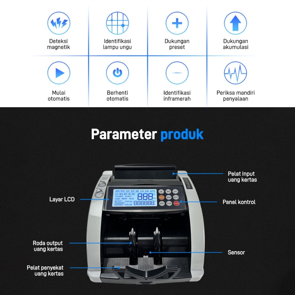 Penghitung Uang Rumah Tangga Komersial - Alat Penghitung Uang Otomatis dengan Deteksi UV dan Manik Magnetik