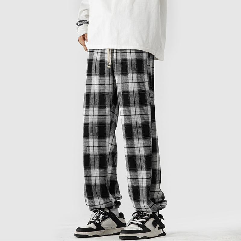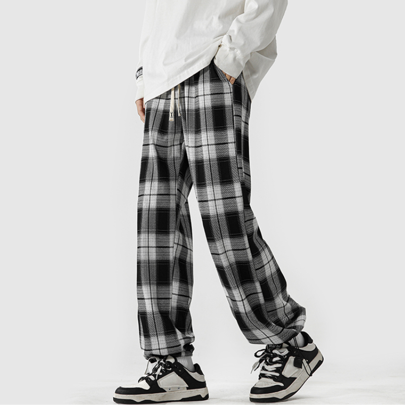 Tamp-X Oversize Jumbo Celana Panjang Pria Joger Baggy Pants Santai Kotak Kotak Korean Style