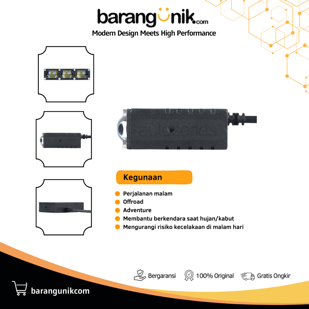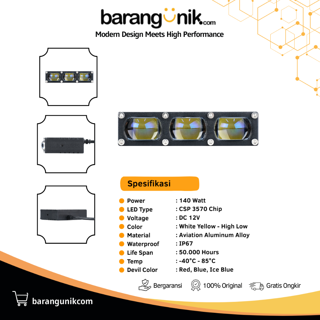 Lampu Tembak Slim 3 Mata 80W Super Terang Tembus Hujan Kabut Motor Grill Mobil MG3 LUXIMOS