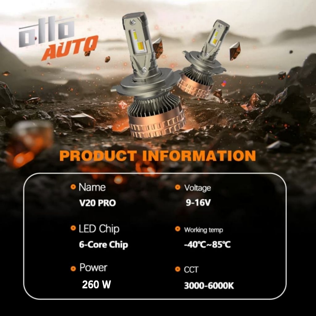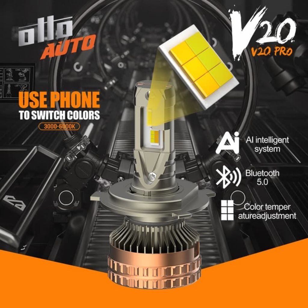 OTTO V20 PRO LAMPU LED MOBIL SETTING WARNA CAHAYA MELALUI APLIKASI