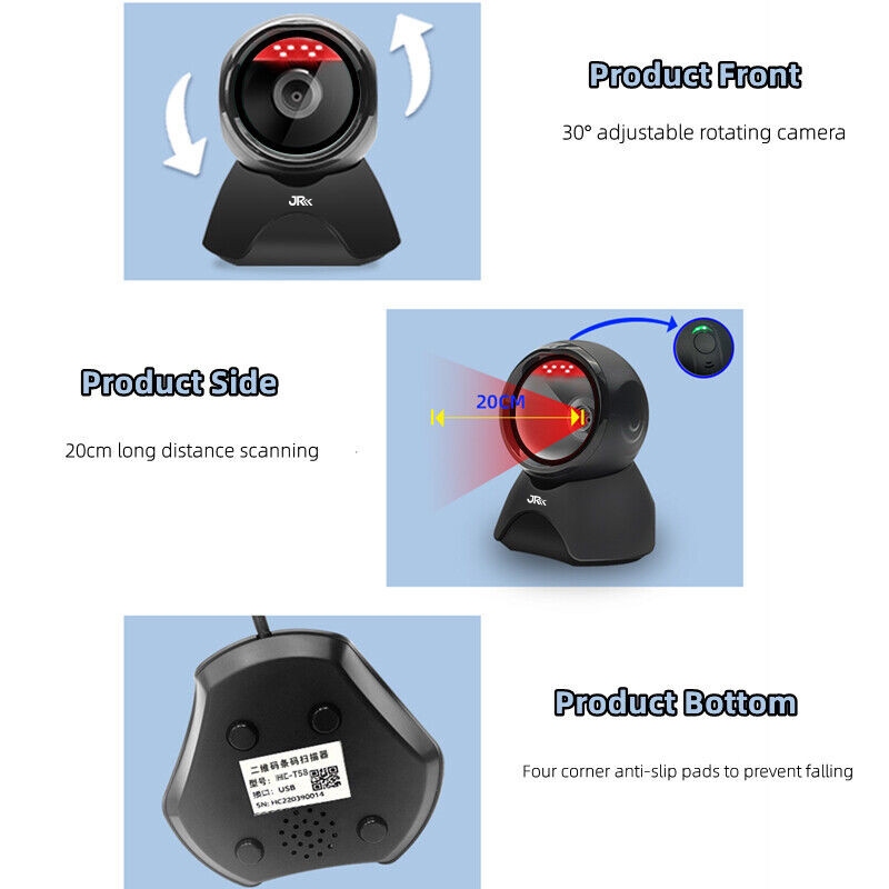 CASHCOW HC-T58 – Scanner Bare 2D/1D Desktop USB HID, Fast Auto-Sensing, Plug&Play, Scan Layar