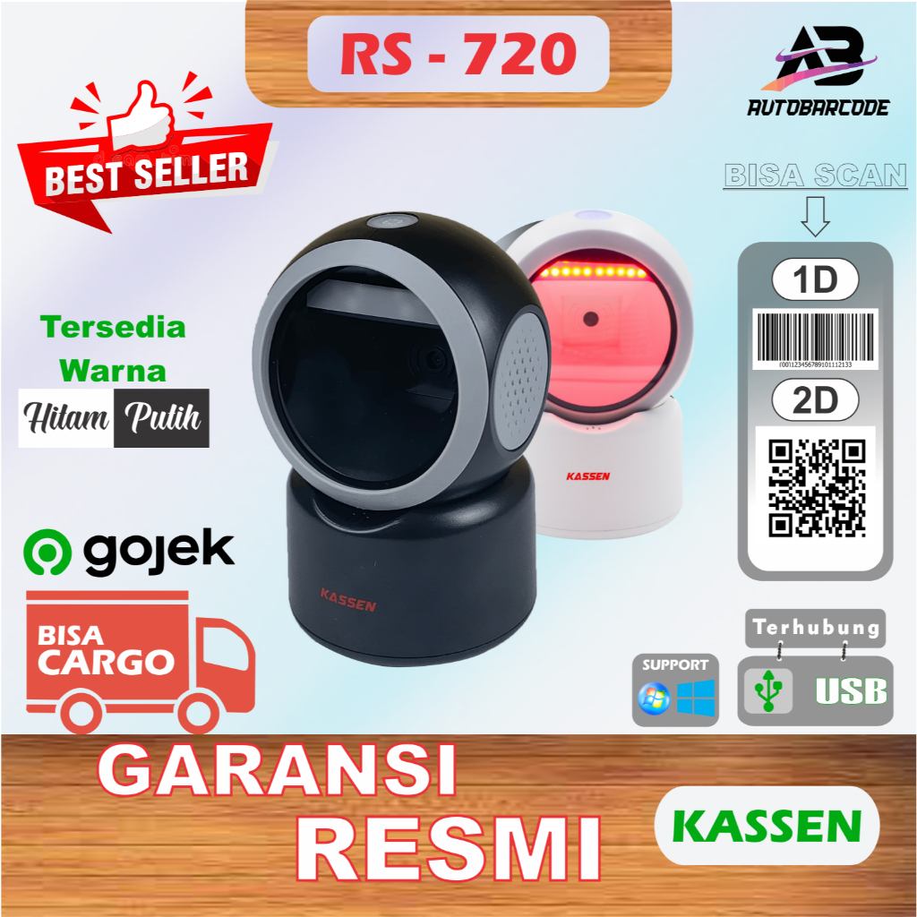 Kassen RS720 Scanner Kasir 2D 1D Usb Omni Autoscan Bare Qre Qris Desktop Scan RS720 RS 720