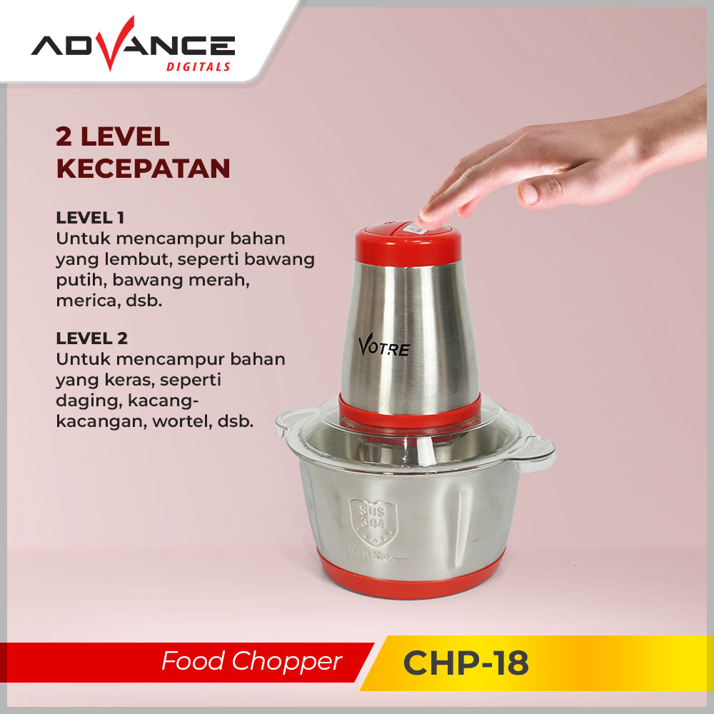 𝐏𝐑𝐎𝐌𝐎 Food Chopper Votre CHP18 alat Penggiling Daging Sayur dan Buah ukuran 2L Garansi 1 Tahun