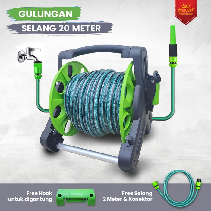 Selang Panjang dan Gulungannya 20 Meter 1 set lengkap untuk taman cuci mobil