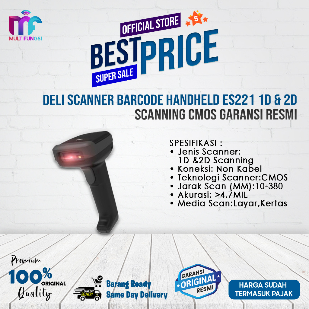 Deli Scanner Bare Handheld ES221 1D & 2D Scanning CMOS Garansi Resmi