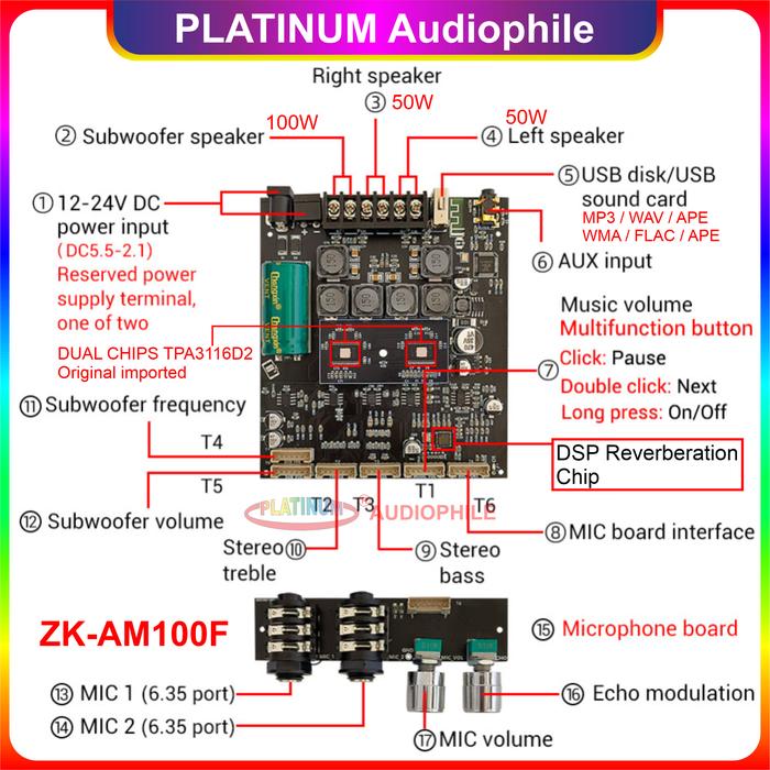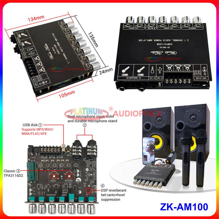 TPA3116 AMPLIFIER KARAOKE ECHO MICROPHONE BLUETOOTH TWS 2.1 CH ORIGINAL ZK-AM100 AM100F - 1. ZK-AM100