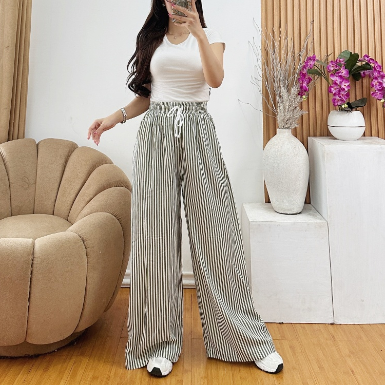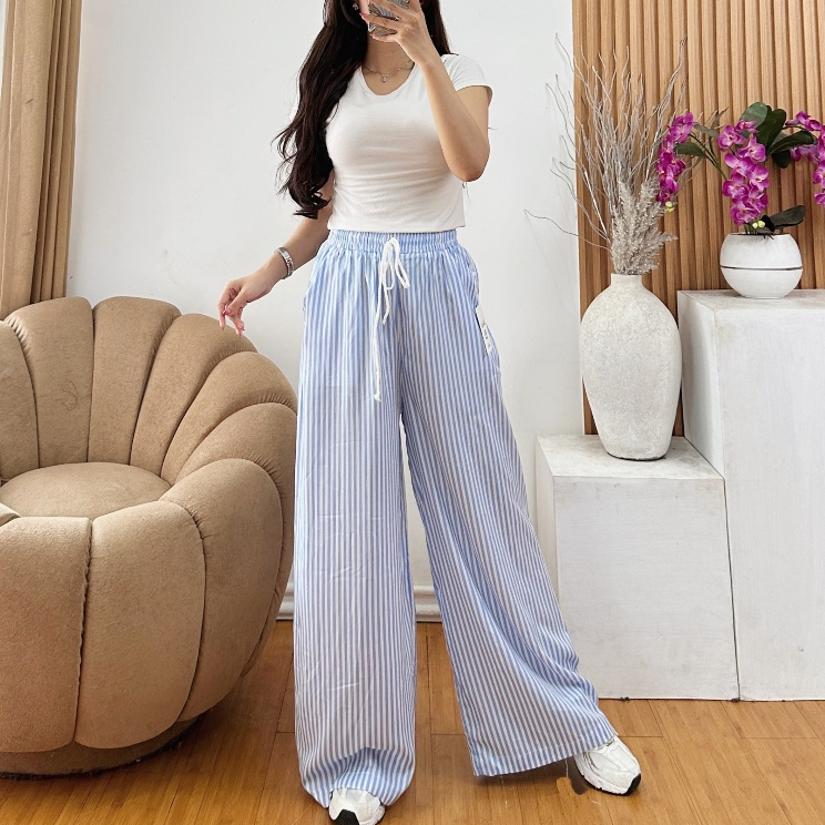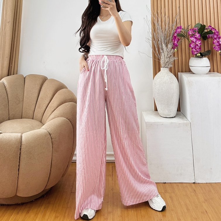 Celana Kulot Wanita Motif Salur Kekinian-Stripe pants_Celana Panjang Wanita Baggy Kantor Kuliah Motif garis kulot