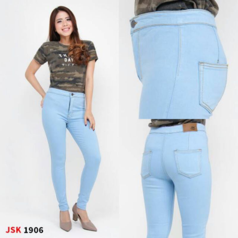 Jsk Celana Panjang Highwaist Skinny Jeans Denim Cewek Wanita 8 Warna Size 27-38