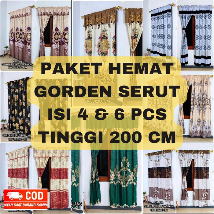 Promo Paket Hemat 4 & 6 Pcs Gorden Serut Jendela Dan Pintu Minimalis Ukuran Tinggi 200 Curtain Katun - Sanur Gorden Seru