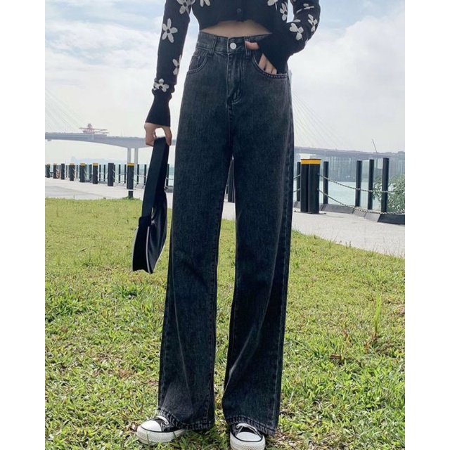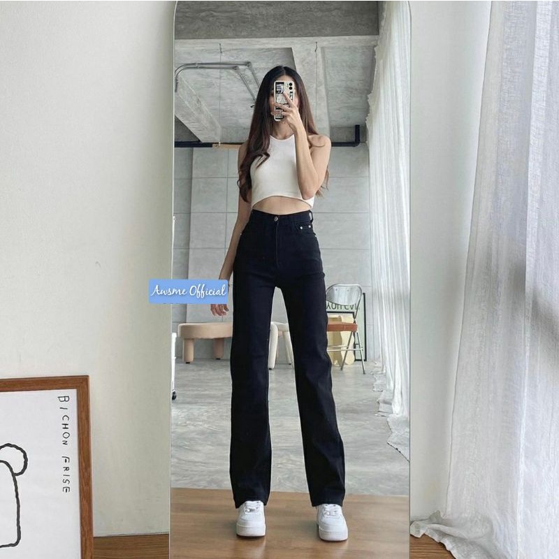 Awsme - Highwaist Loose Jeans Basic HW Loose Kulot Jeans Celana Panjang Jeans Wanita