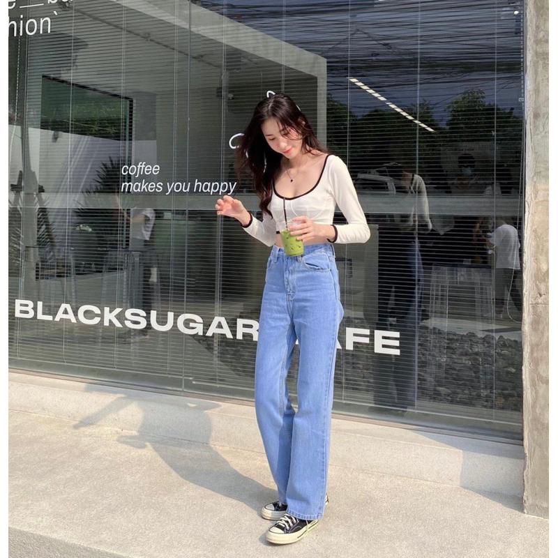 Highwaist Kulot Jeans Wanita Loose