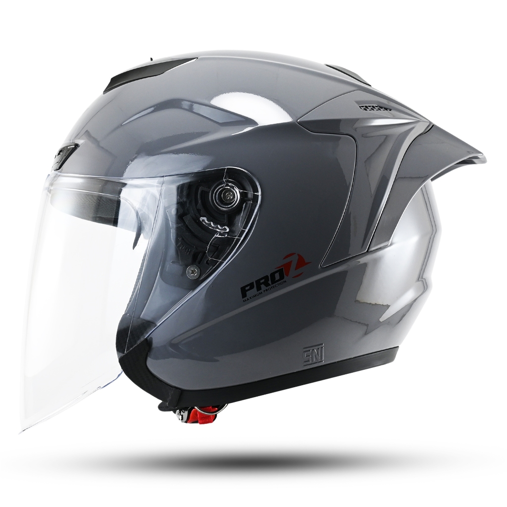 Helm Half Face Pro Z Solid SNI Kaca Silver Clear Smoke