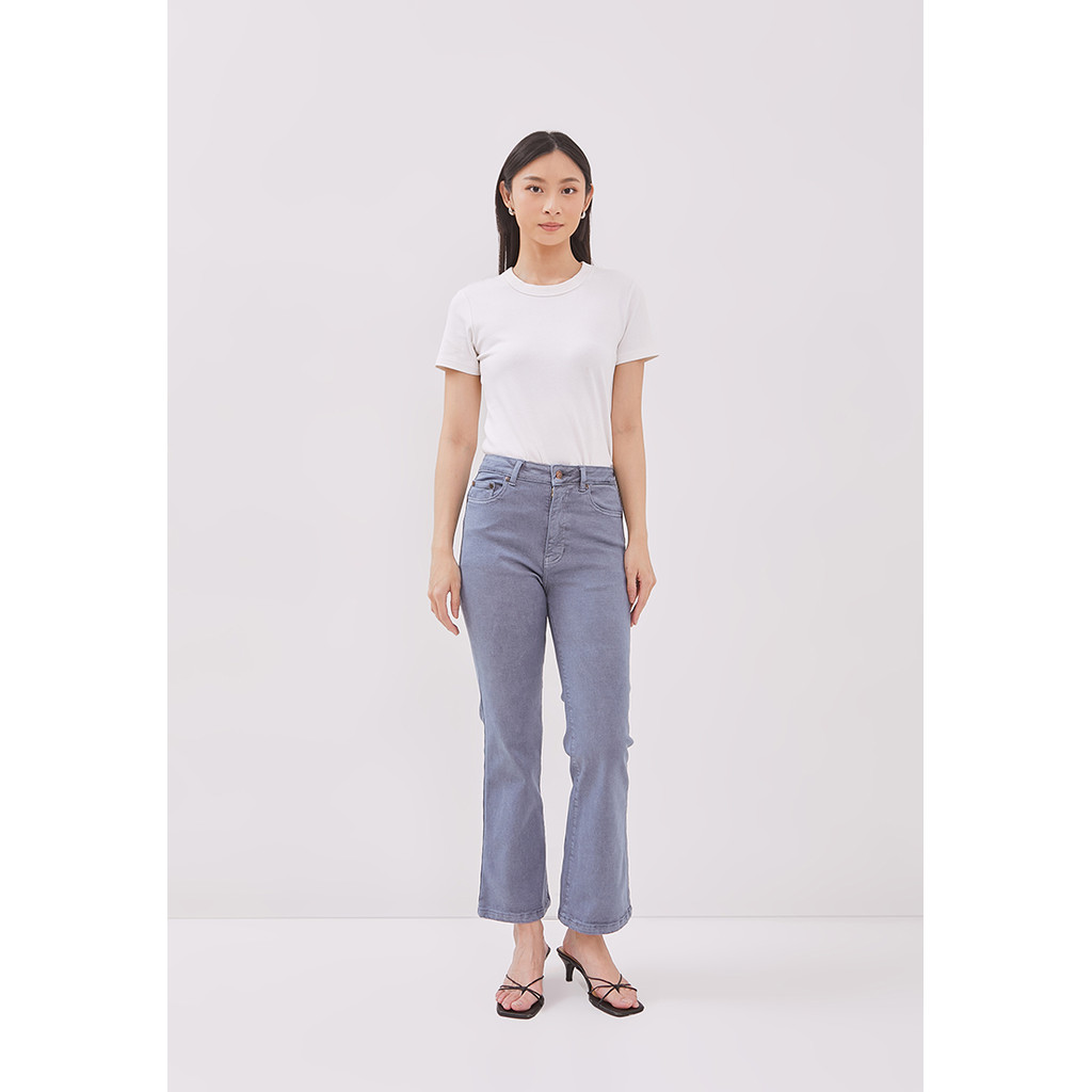 DUST Celana Cropped Cutbray Colored Denim Rana Biru Comfease (D. 3824)