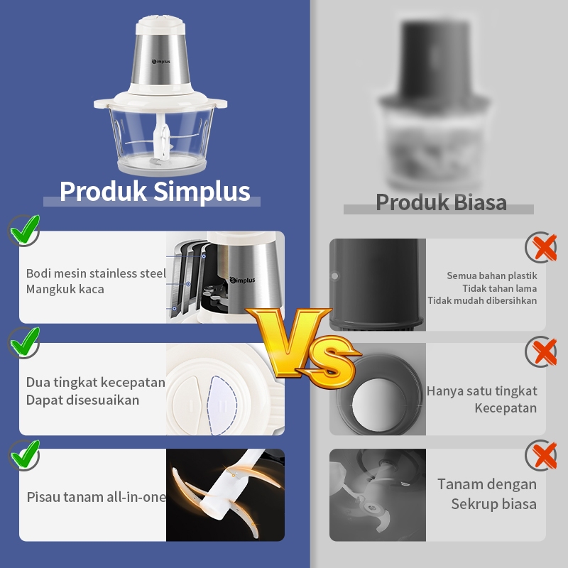 𝐏𝐑𝐎𝐌𝐎 Simplus Chopper Blender 2L Penggiling Daging Bumbu Cabai Serbaguna 300W Bergaransi 1 tahun