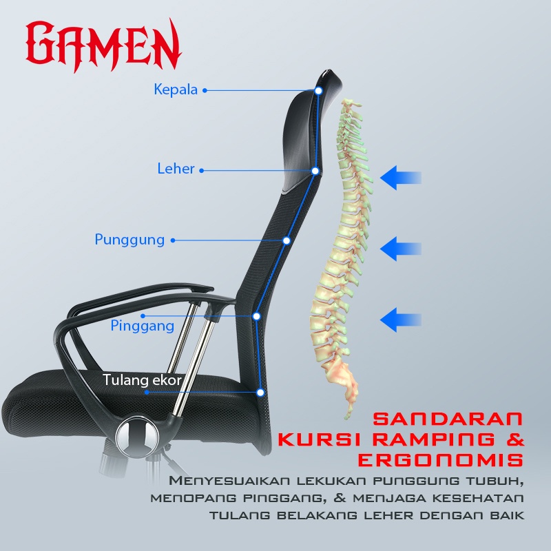 Gamen Kursi Kantor Ergonomis / Premium Office Chair GC100 Tahan 150 Kg Original - Garansi 1 Tahun