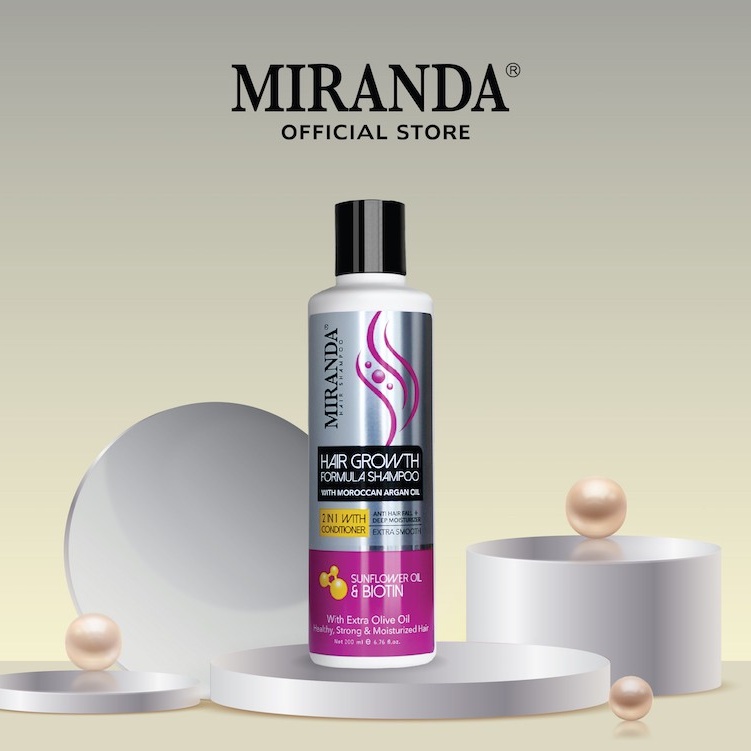 Miranda Hair Growth Biotin Shampoo Sunflower Oil 2in1 with Conditioner 200ml | Perawatan Rambut Rontok Penumbuh Pemanjang Rambut Cepat